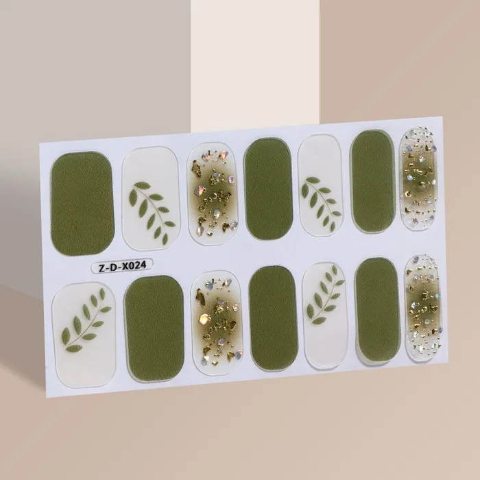 Лаковые полоски для маникюра, 14 шт., бежевые, зелёные — Характеристики