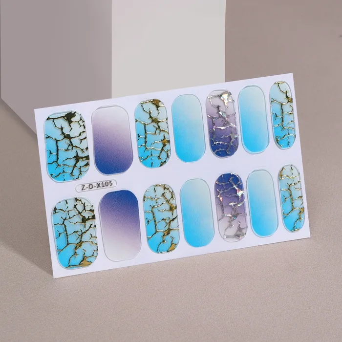 Лаковые полоски для маникюра, 14 шт., голубые, синие — Характеристики
