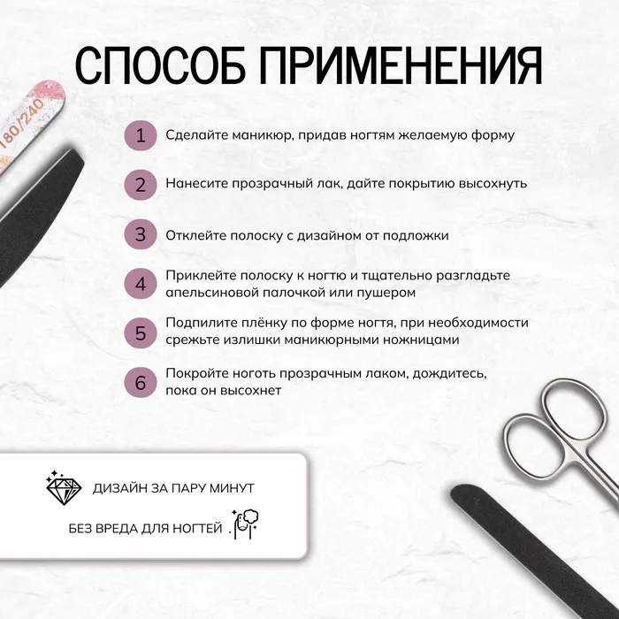 Наклейки для дизайна ногтей подойдут для нанесения на гель-лак и обычное базовое покрытие.
