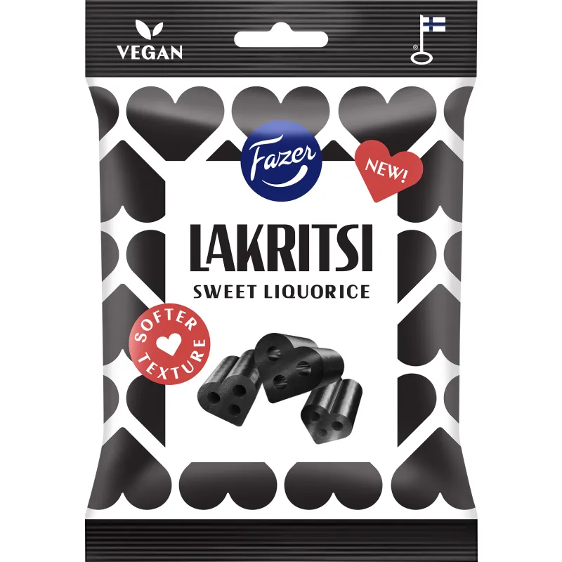 Мягкий, сердцевидный Fazer Sweet Liquorice — это лучшее финское лакрици. Его восхитительный вкус основан на традиционном рецепте Fazer 1928 года. Изготовлено в Лаппеенранте. Упаковка весом 150 г. Мы постоянно обновляем информацию о продукте, однако всегда рекомендуем проверять данные на упаковке.