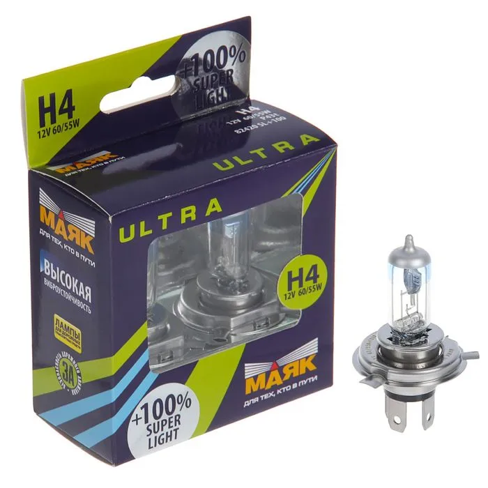 Благодаря длине, цветовым характеристикам и яркости светового луча лампа «Маяк» серии Super Light обеспечивает лучшую видимость по сравнению с аналогами. Полностью подходит для замены приборов завода-производителя. Прочность колбы увеличена за счёт усовершенствованного покрытия.