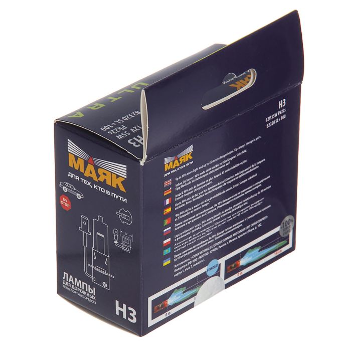 Лампа автомобильная Маяк Ультра Super Light+100%, H3, 12 В, 55 Вт, набор 2 шт. — Характеристики