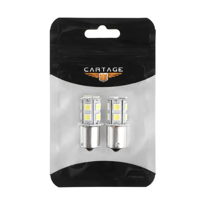 Автолампа светодиодная Cartage, P21/W, 12 В, 13 SMD-5050, набор 2 шт, свет красный-источник освещения для установки на автомобиль в качестве стоп-сигналов. Модель отличается надежной и эффективной светоотдачей. Прослужит длительное время.