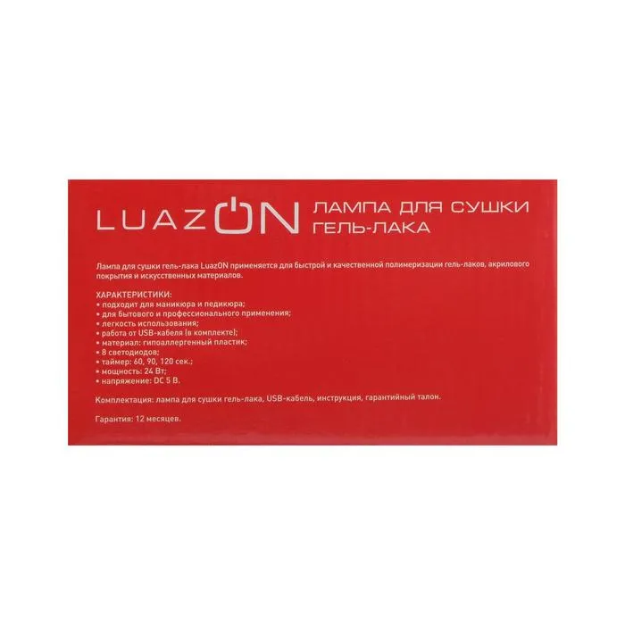 Лампа для гель-лака Luazon LUF-17, LED, 24 Вт, 8 диодов, таймер 60/90/120 сек,USB, белая — Характеристики
