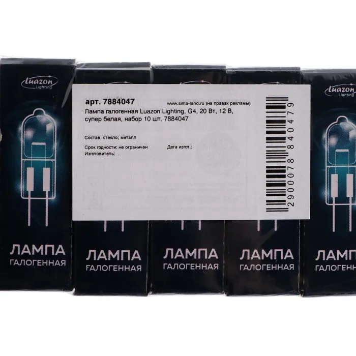 Лампа галогенная Luazon Lighting, G4, 20 Вт, 12 В, супер белая, набор 10 шт. — Характеристики