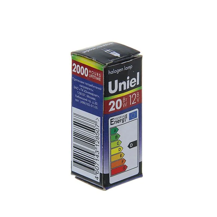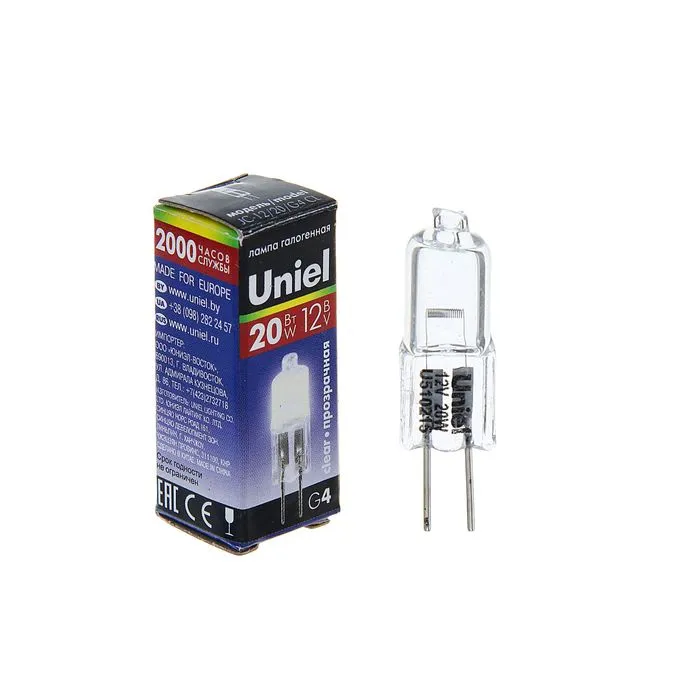 Лампа галогенная Uniel, G4, 20 Вт, 12 В, прозрачная — Характеристики