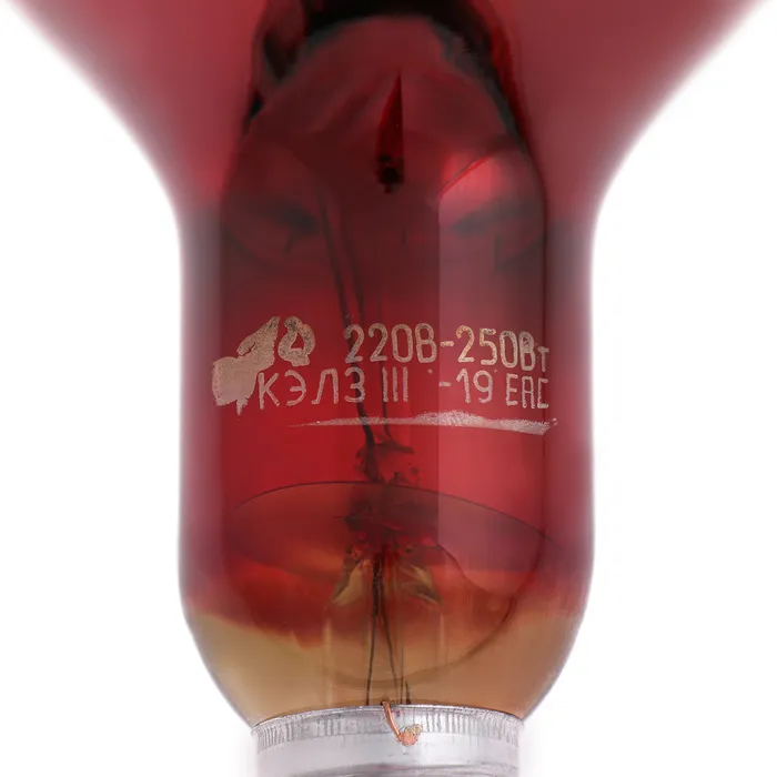 Лампа инфракрасная, 250 Вт, Е 27, 220 В, длина волны 2500 нм, красная колба — Характеристики