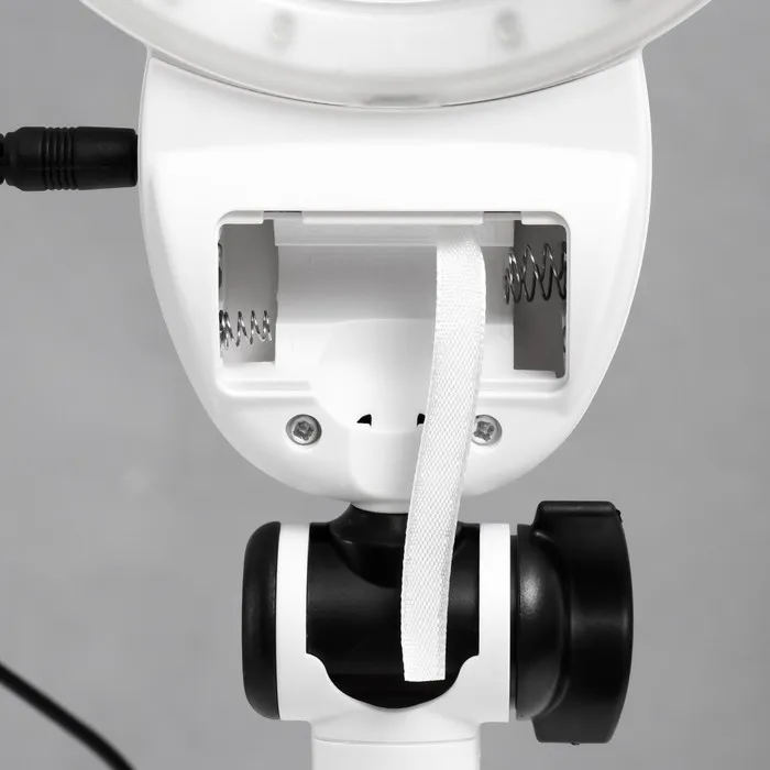 - Мощная LED-подсветка: 18 светодиодов обеспечивают равномерное освещение без теней. Световой поток — до 2500 лм, что соответствует яркости дневного света. Работает от USB или от 3 батареек ААА — можно использовать дома, в мастерской или брать с собой.