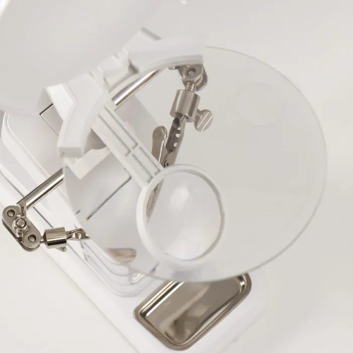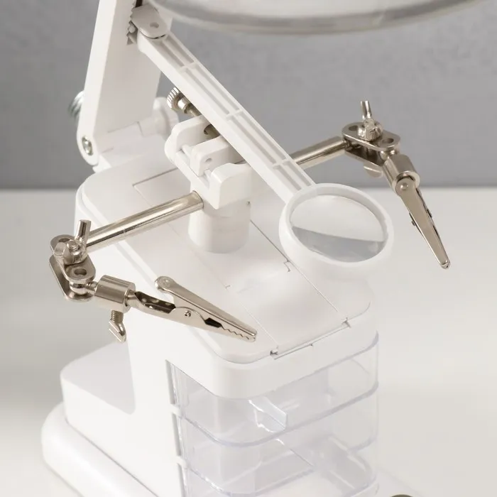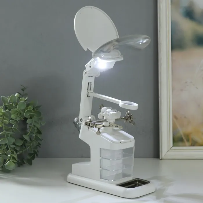 Эта лампа с увеличительным стеклом станет незаменимым помощником для тех, кто работает с мелкими деталями. Ее современный дизайн и функциональность делают её идеальной для использования в мастерских, хобби или офисах.