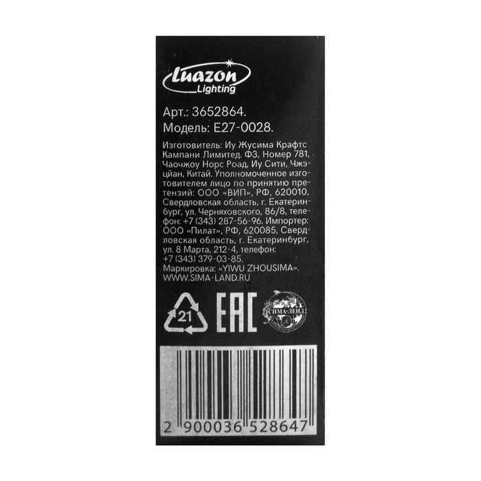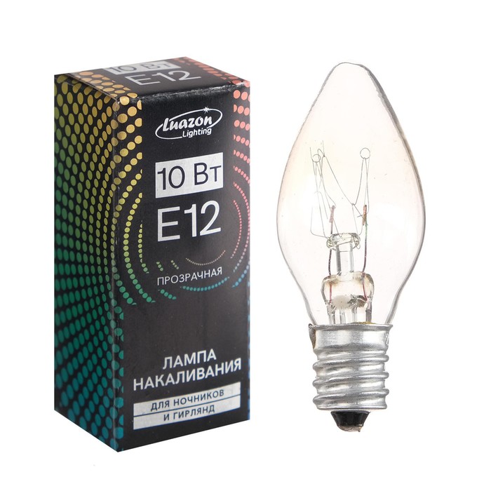 Лампа накаливания, 10 Вт, E12, 220 В, для ночников и гирлянд, прозрачная — Характеристики