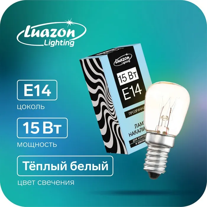 Лампа накаливания, 15 Вт, E14, 220 В, для холодильников и швейных машин, прозрачная