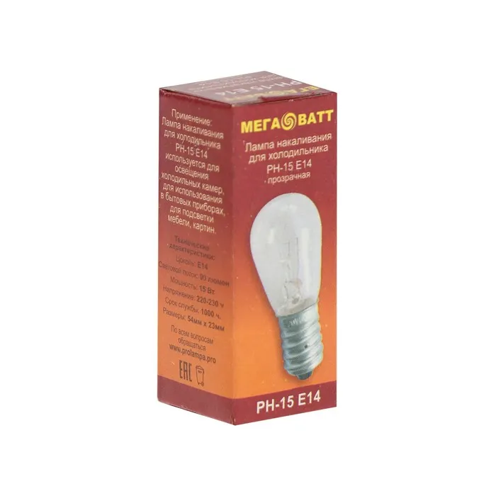 Лампа накаливания для холодильника МЕГАВАТТ, РН-15, E14