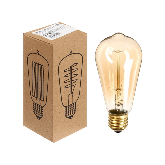 Лампа накаливания винтажная «Ретро», ST58, 60 Вт, Е27, 230 В, 140×58 мм, тёплый белый — Характеристики