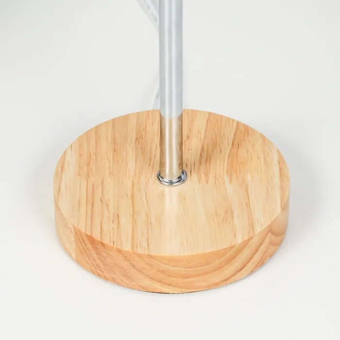 Эта настольная лампа станет стильным дополнением вашего интерьера, идеально сочетая практичность и элегантность. С высотой 42 см и размерами 13×13 см, она прекрасно впишется в любой уголок вашего дома — от рабочего стола до прикроватной тумбочки. Коричневое основание из дерева и хромированные детали придают ей современный и классический вид.