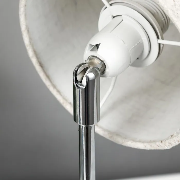 - Цилиндрический текстильный абажур в темных тонах создает мягкое и комфортное освещение.