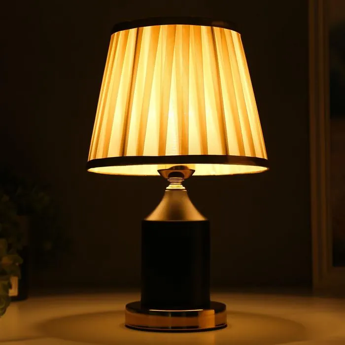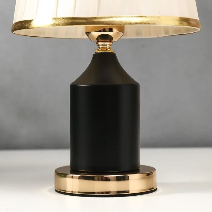 Эта настольная лампа станет стильным акцентом в вашем интерьере, идеально подходя для создания уютной атмосферы. С высотой 34 см и размерами 21×21 см, она прекрасно вписывается в любое пространство. Золотое и черное металлическое основание в сочетании с бежевым текстильным абажуром придают изделию элегантный и классический вид.