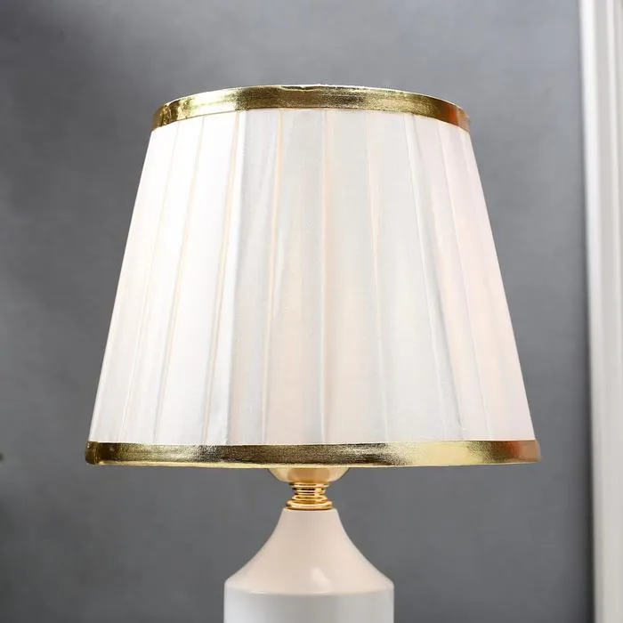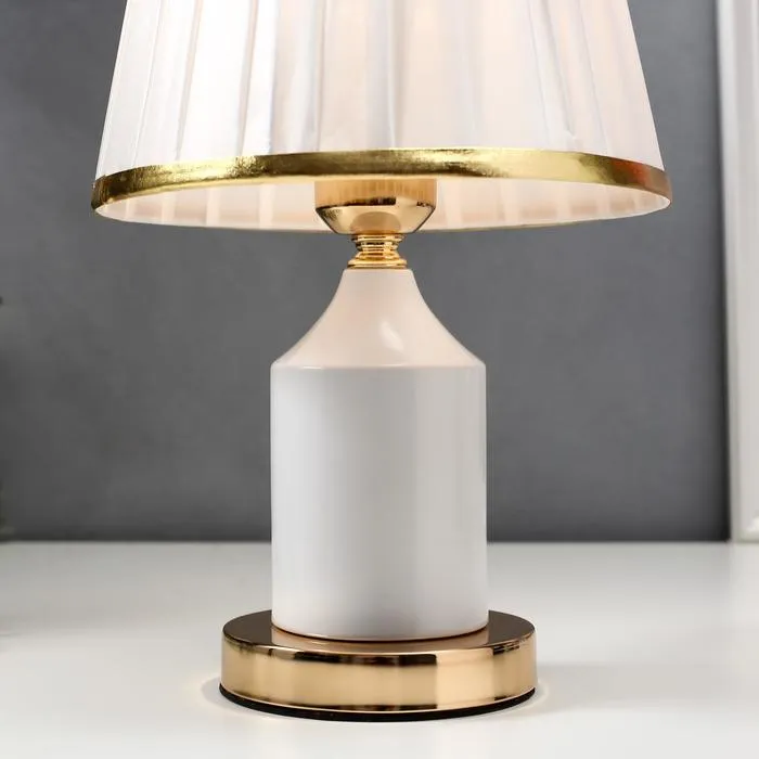Эта настольная лампа станет стильным дополнением вашего интерьера, идеально подходя для создания уютной атмосферы. С высотой 34 см и размерами 21×21 см, она легко вписывается в любое пространство. Золотое и белое металлическое основание в сочетании с белым текстильным абажуром придают изделию элегантный и классический вид.