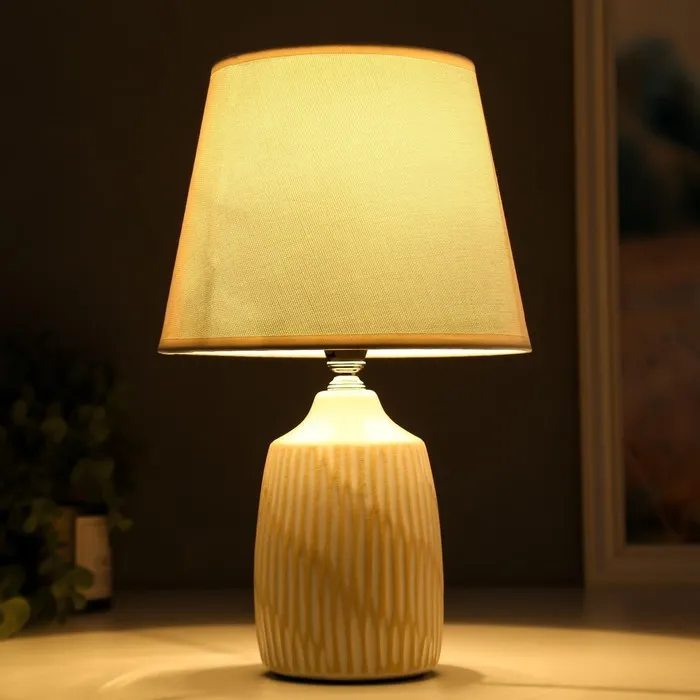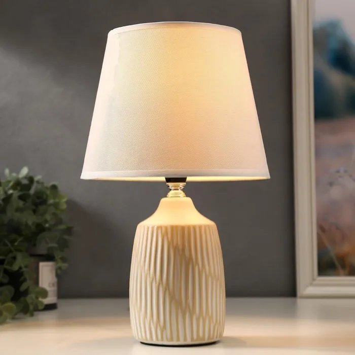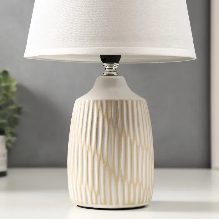 Эта настольная лампа станет прекрасным дополнением вашего интерьера, добавляя стиль и уют. С высотой 32 см и размерами 20×20 см, она идеально подходит для размещения на столе, тумбе или в уголке для чтения. Белое керамическое основание в сочетании с текстильным абажуром создает мягкое и приятное освещение, что делает её отличным выбором для классического стиля.