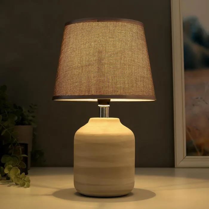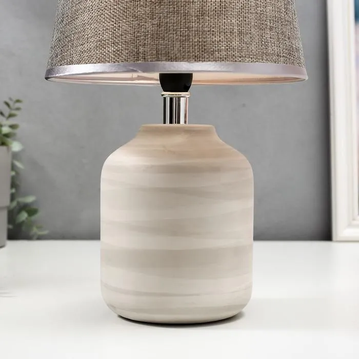 Эта настольная лампа станет стильным акцентом в вашем интерьере, добавляя уют и комфорт. С высотой 30 см и размерами 20×20 см, она идеально подходит для рабочего стола или прикроватной тумбочки. Серое керамическое основание и трапециевидный абажур из текстиля и пластика в тёмных тонах создают атмосферу спокойствия и гармонии.