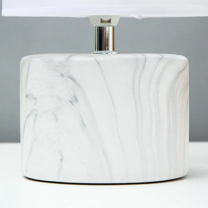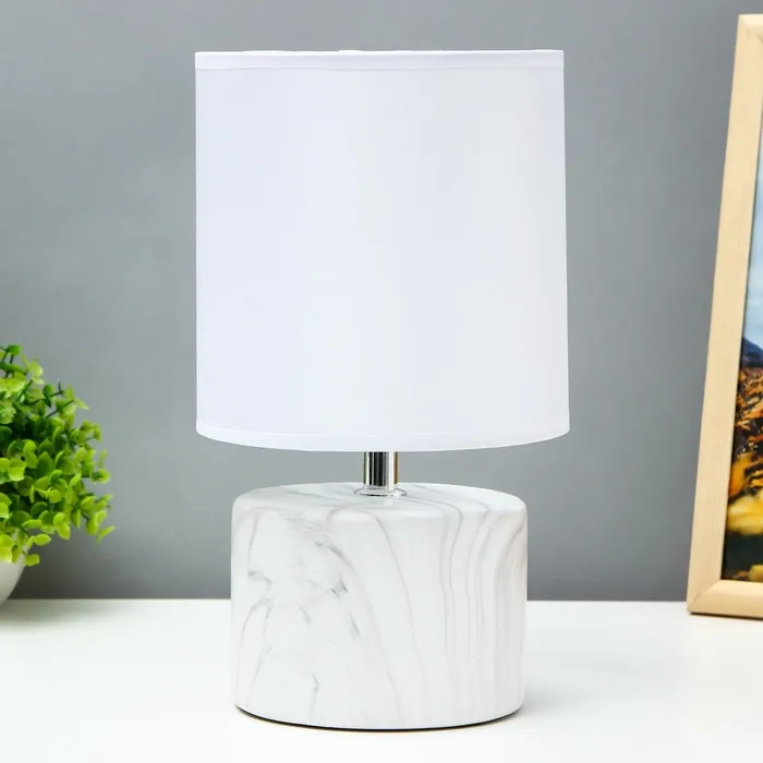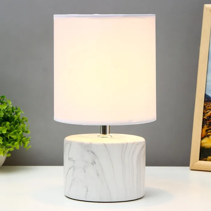 Эта настольная лампа с бело-серым основанием станет стильным акцентом в вашем интерьере. Она отлично подойдет для создания уютной атмосферы на рабочем столе, тумбочке или в любом другом уголке вашего дома. Цилиндрический абажур из текстиля и пластика обеспечивает мягкое и комфортное освещение, что делает её идеальным выбором для чтения или отдыха.