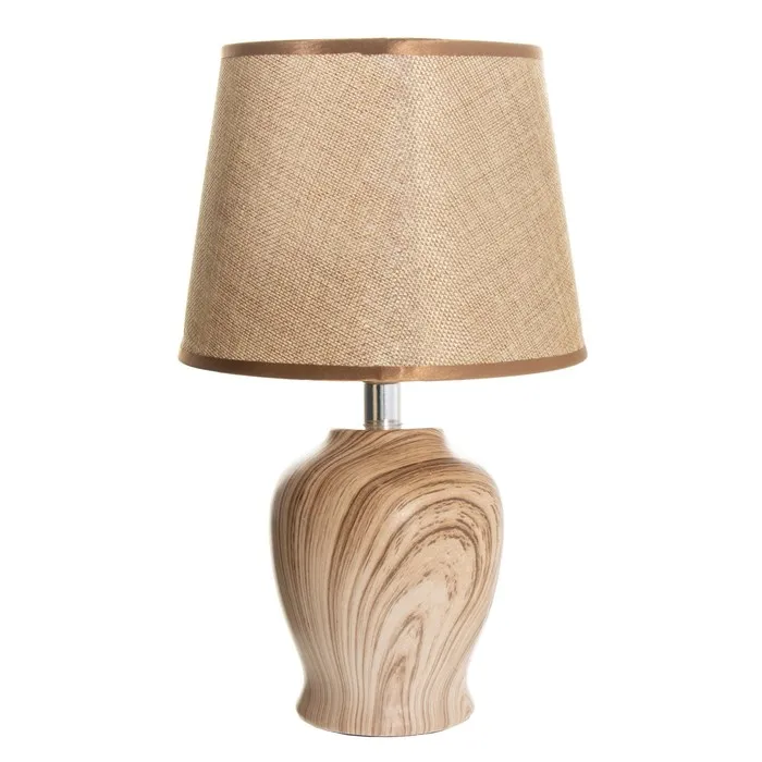 Эта настольная лампа с основанием из коричневой керамики станет отличным дополнением вашего интерьера. Она идеально подходит для создания уюта на столе или прикроватной тумбочке. Трапециевидный абажур из текстиля и пластика обеспечивает мягкое освещение, что делает её подходящей для чтения и отдыха.