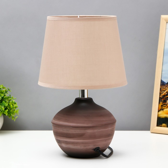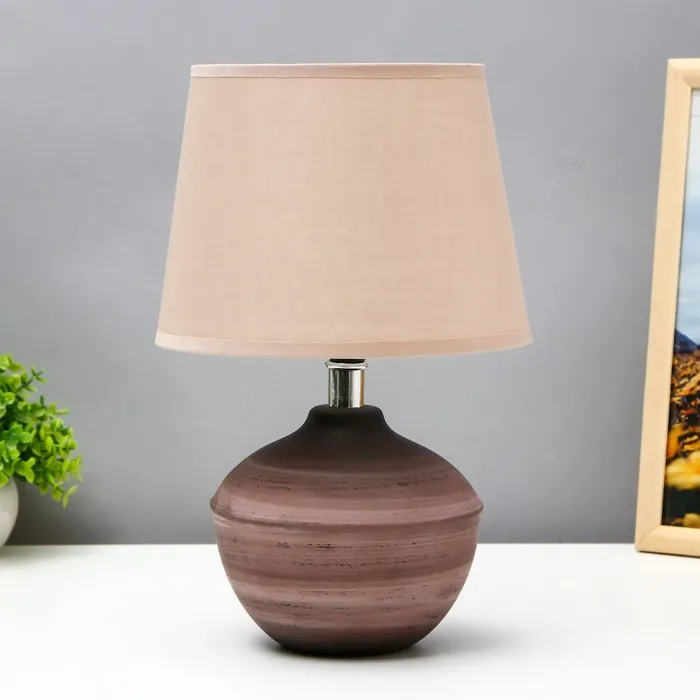 Уют в классическом исполнении! Настольная лампа с керамическим основанием в кофейных тонах создает атмосферу тепла и комфорта. Трапециевидный текстильный абажур мягко рассеивает свет, делая его идеальным для вечернего чтения.