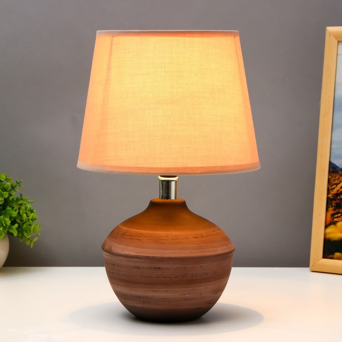 - Керамическая основа: Коричневое основание придает лампе устойчивость и солидный вид. Компактные размеры 20×20×30 см удобны для небольших поверхностей.