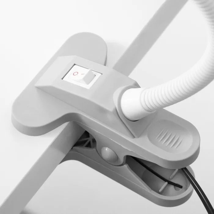 - Удобное крепление на прищепке позволяет разместить лампу в любом удобном месте.