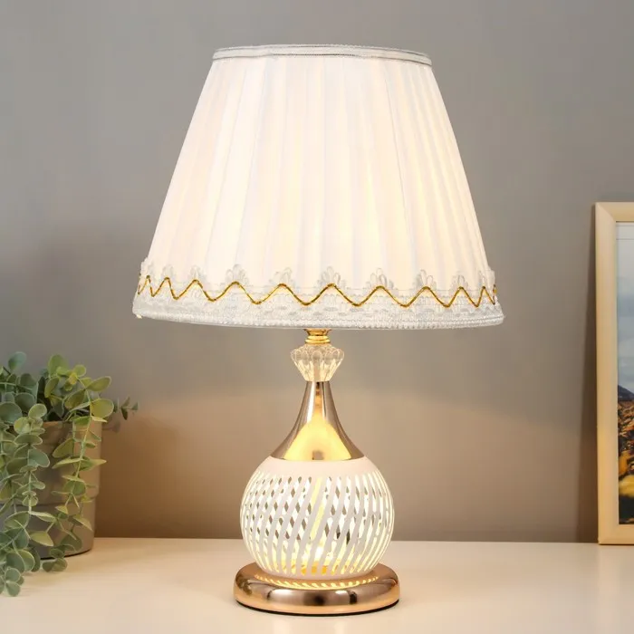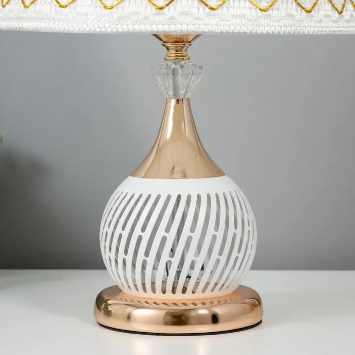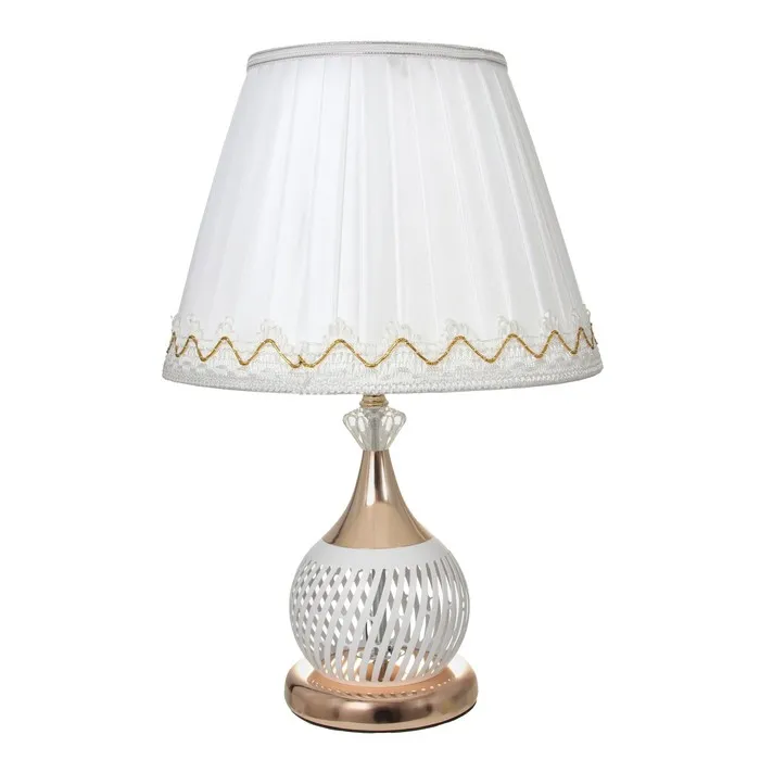 Элегантная настольная лампа с абажуром — это идеальное решение для создания уютной атмосферы в вашем интерьере. С её классическим дизайном и гармоничным сочетанием белого и золотого цветов, она станет стильным акцентом на вашем столе или тумбочке.