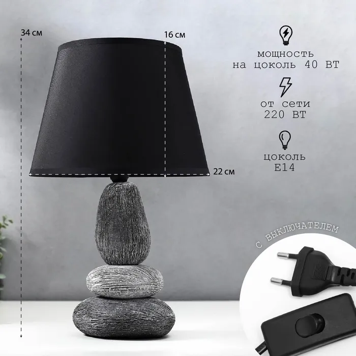 Лампа настольная 16446/1GR E14 40вт серо-черный 22×22×34 см RISALUX — Характеристики