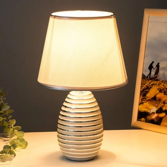 Эта настольная лампа с керамическим основанием в серебристом цвете станет стильным акцентом в вашем интерьере. Ее современный дизайн и мягкое освещение идеально подойдут для создания уютной атмосферы в спальне, кабинете или гостиной. Трапециевидный абажур из пластика и текстиля обеспечивает комфортное освещение, подходящее для чтения или отдыха.