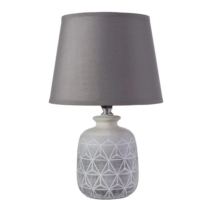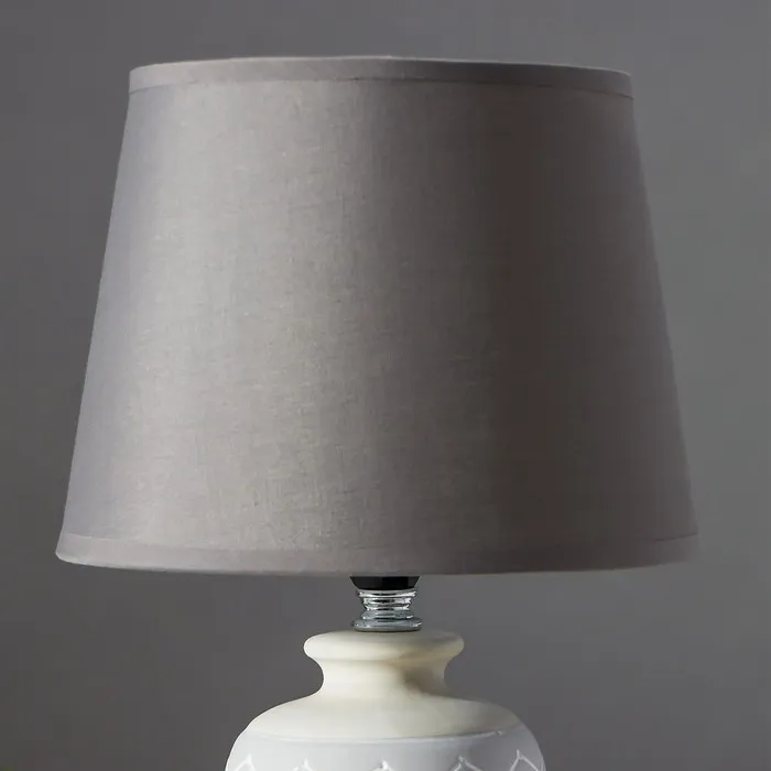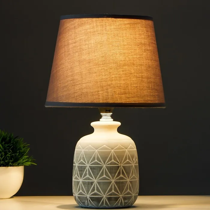 Эта настольная лампа станет стильным акцентом в вашем интерьере, привнося изысканность и уют. С серым керамическим основанием и трапециевидным текстильным абажуром, она идеально впишется в классический стиль, создавая теплую атмосферу для работы и отдыха.