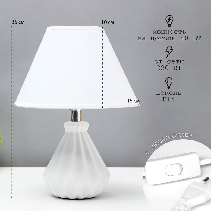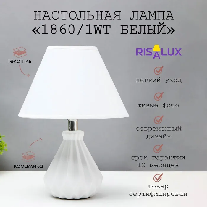 Лампа настольная 1860/1WT E14 40Вт белый 25х25х35 см RISALUX — Характеристики