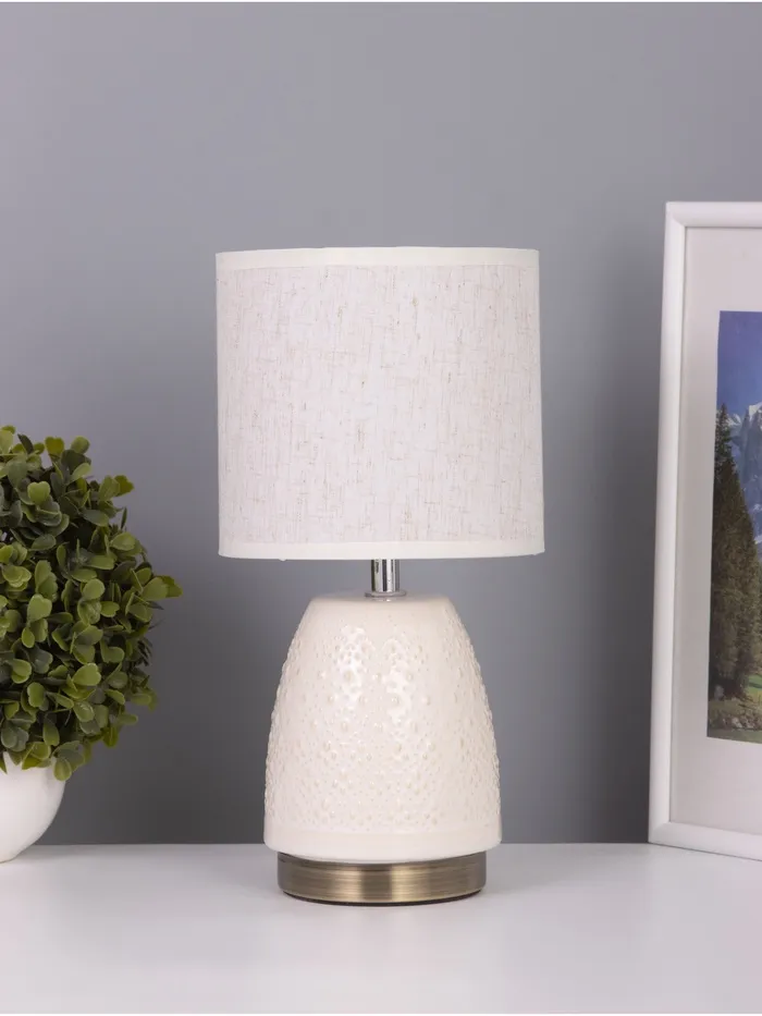 Свет, который добавляет цвета в интерьер. Настольная лампа с текстильным абажуром и керамическим основанием — уютное решение для прикроватной тумбы, письменного стола или зоны отдыха. Её белая керамика, цилиндрический разноцветный абажур и мягкий рассеянный свет создают атмосферу тепла и домашнего уюта в интерьерах, где важны индивидуальность и простота.