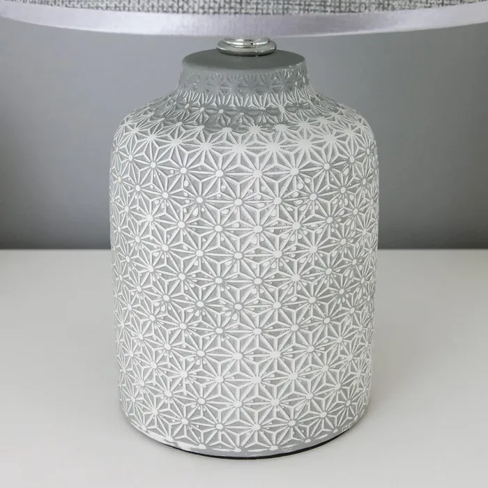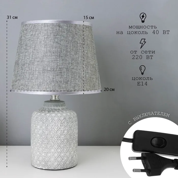 Эта настольная лампа станет стильным акцентом в вашем интерьере, добавляя уют и элегантность в любое пространство. Серое керамическое основание в сочетании с текстильным абажуром создает гармоничный образ, подходящий для классического стиля оформления.