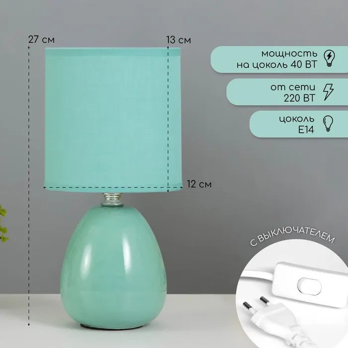 Эта настольная лампа станет ярким акцентом в вашем интерьере, добавляя нотку свежести и стиля. Зеленое керамическое основание в сочетании с бирюзовым текстильным абажуром создает уникальный образ, идеально подходящий для классических и современных интерьеров.