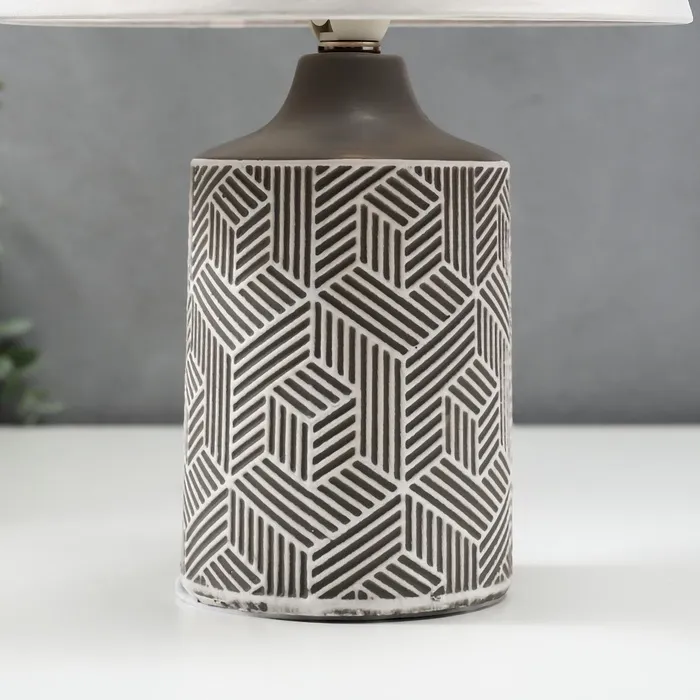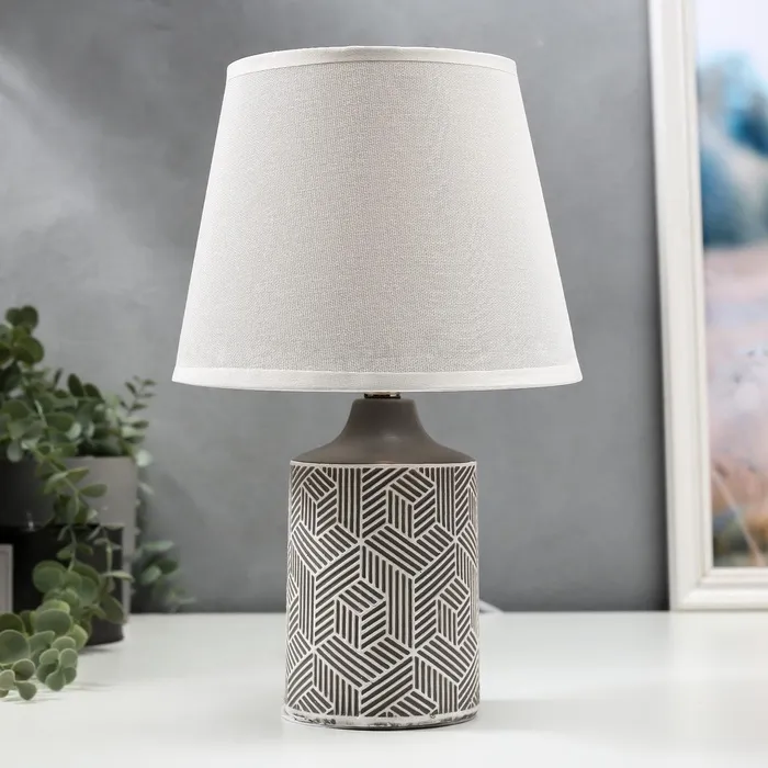 Эта настольная лампа станет элегантным дополнением вашего интерьера, привнося в него нотки современности и стиля. Серое керамическое основание в сочетании с трапециевидным абажуром в темных тонах создает гармоничный и утонченный образ, подходящий для различных стилей оформления.