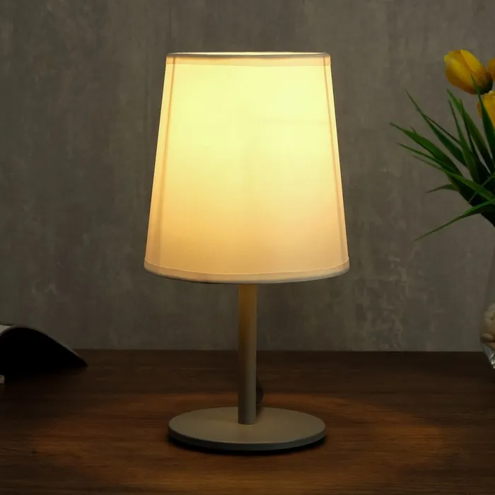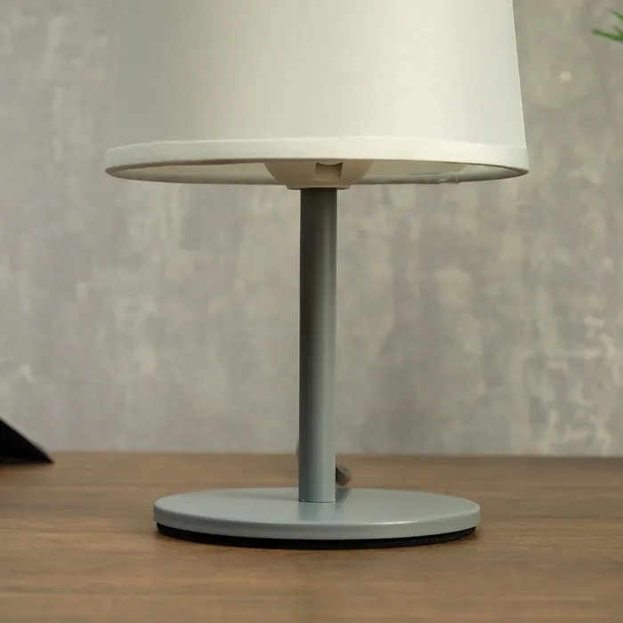 Эта настольная лампа станет стильным акцентом в вашем интерьере, добавляя нотки классики и элегантности. Серое металлическое основание и светлый текстильный абажур в форме трапеции создают гармоничное сочетание, подходящее для различных стилей оформления.