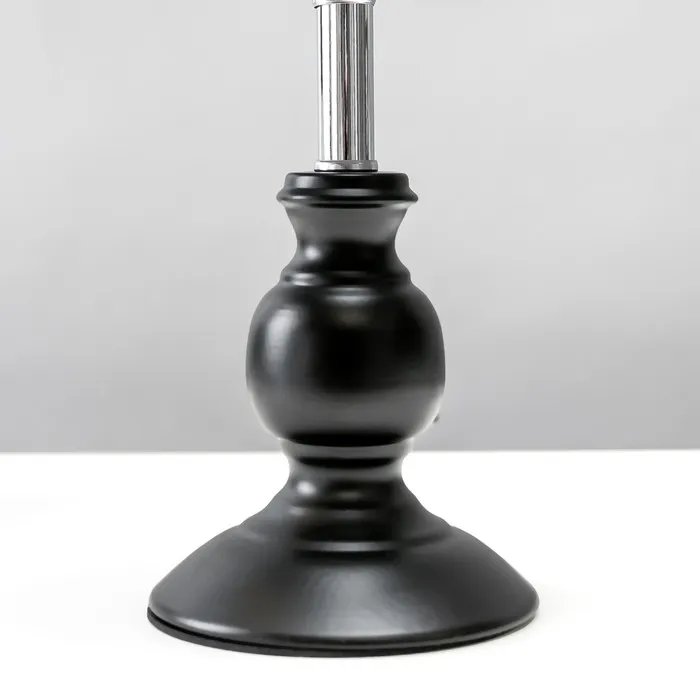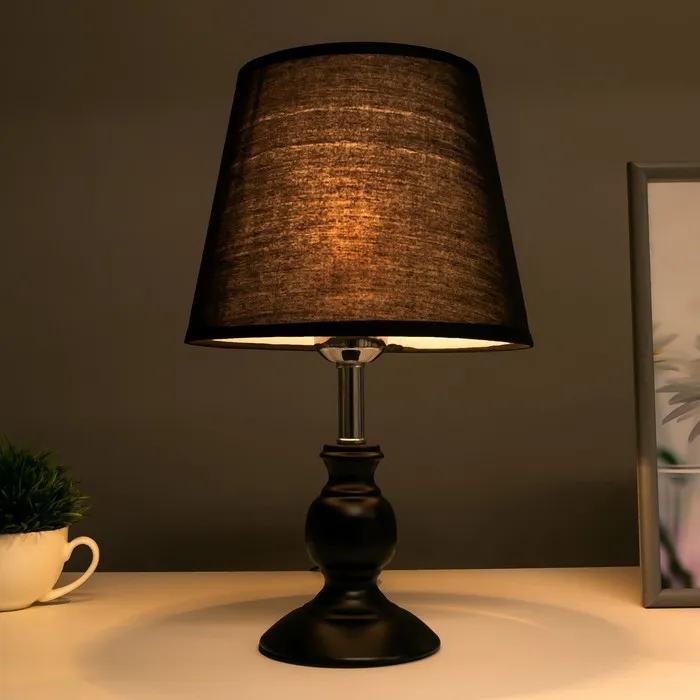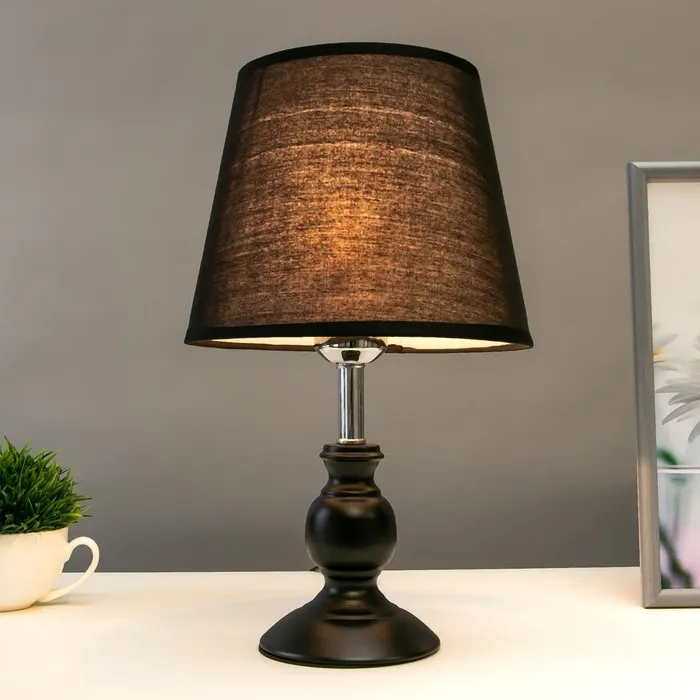 Эта настольная лампа станет стильным дополнением вашего рабочего пространства или уютного уголка дома. Сочетание черного металлического основания и текстильного абажура в темных тонах создает элегантный и современный образ, который легко впишется в любой интерьер.