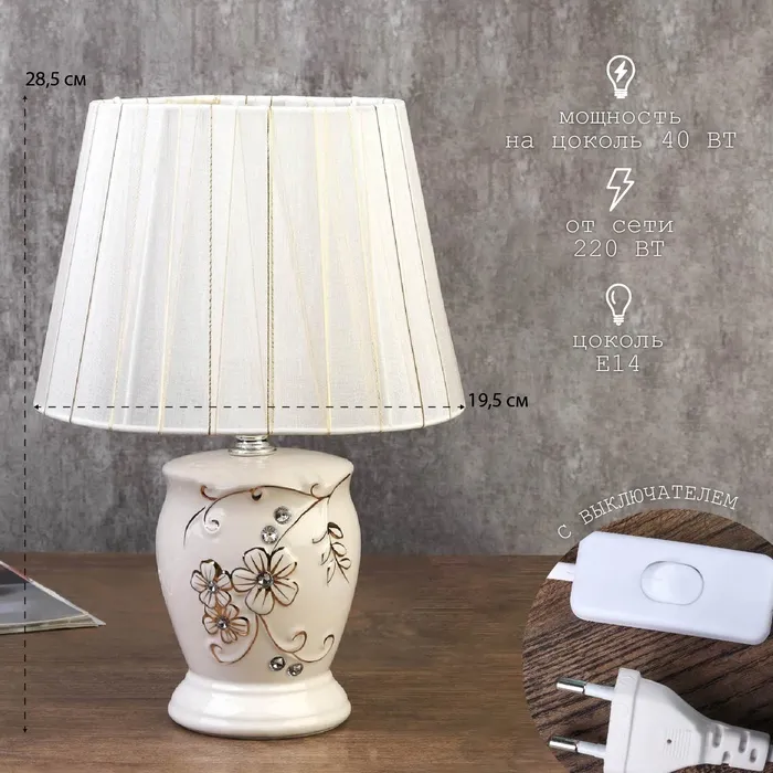 Лампа настольная 7555096TL/1 E14 40Вт белый 19,5х19,5х28,5 см RISALUX — Характеристики