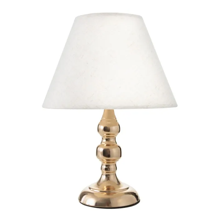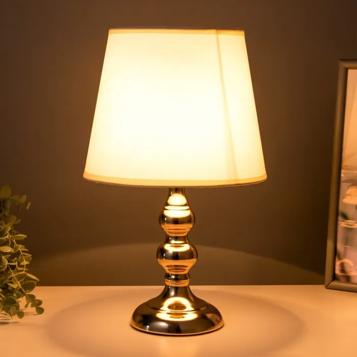 Настольная лампа «Адель» с текстильным абажуром украсит интерьер в классическом стиле. Глянцевое золотое основание сделает спальню или гостиную роскошной.