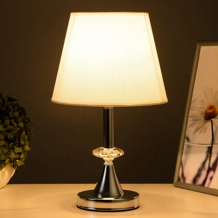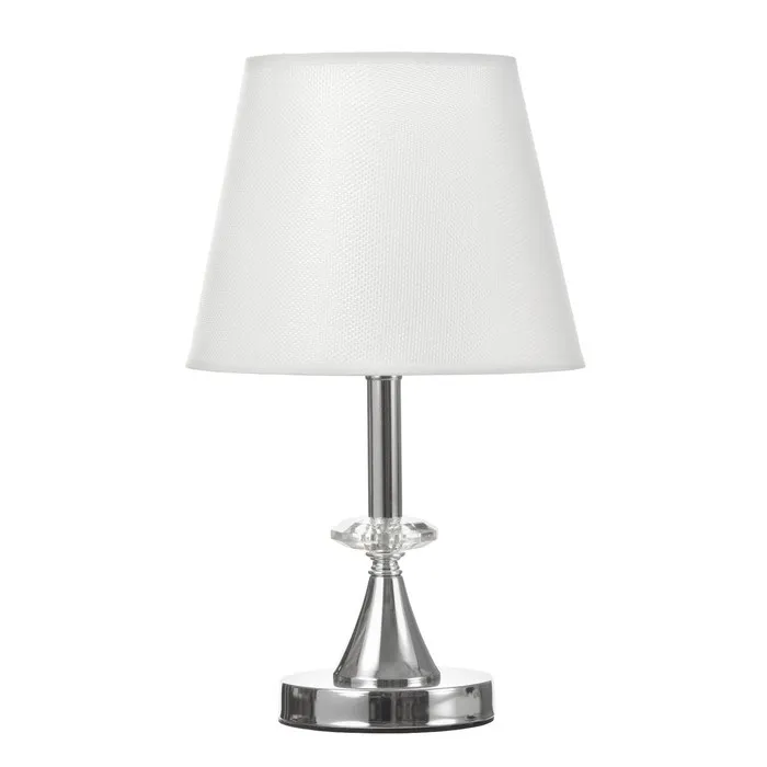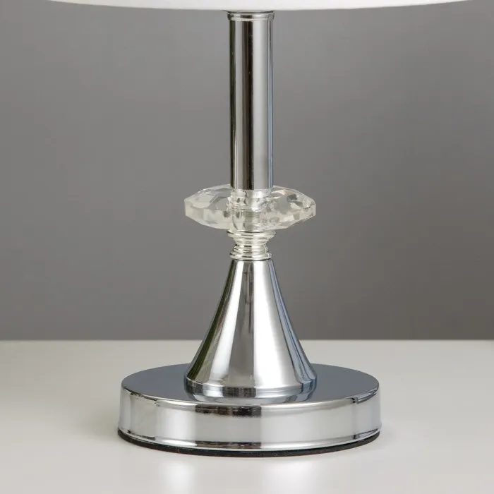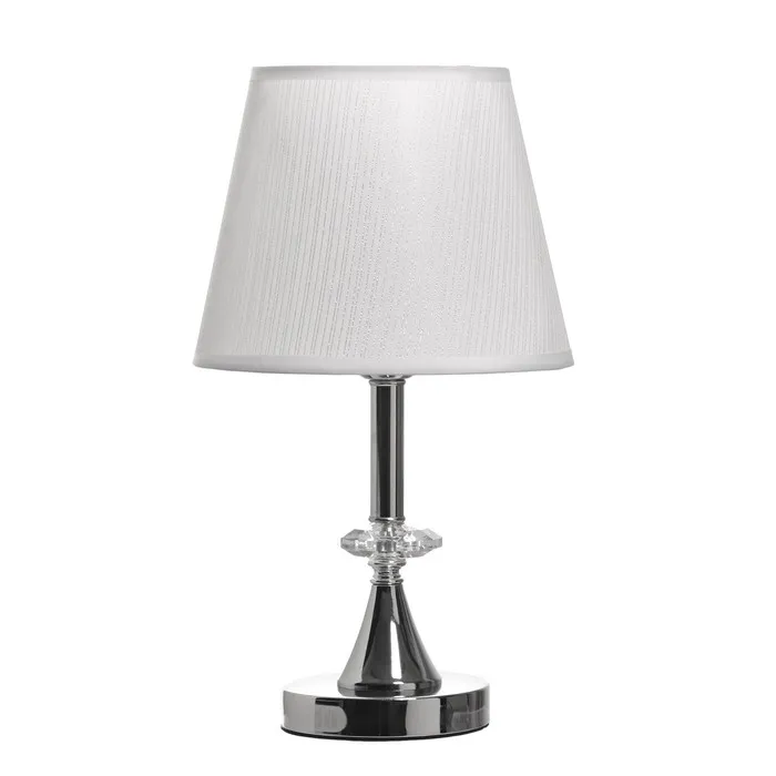 Эта настольная лампа станет отличным выбором для создания уютной атмосферы в вашем доме. С хромированным основанием и белым текстильным абажуром, она идеально впишется в любой интерьер, добавляя стиль и элегантность.
