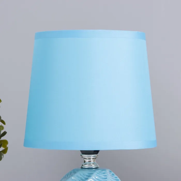 • Голубой текстильный абажур создает мягкий свет, подходящий для чтения или отдыха.