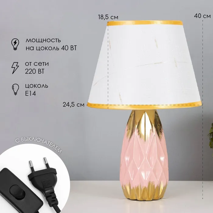 Лампа настольная «Андреа» 1×40 Вт Е14 розовый/золото 24×24×40 см — Характеристики