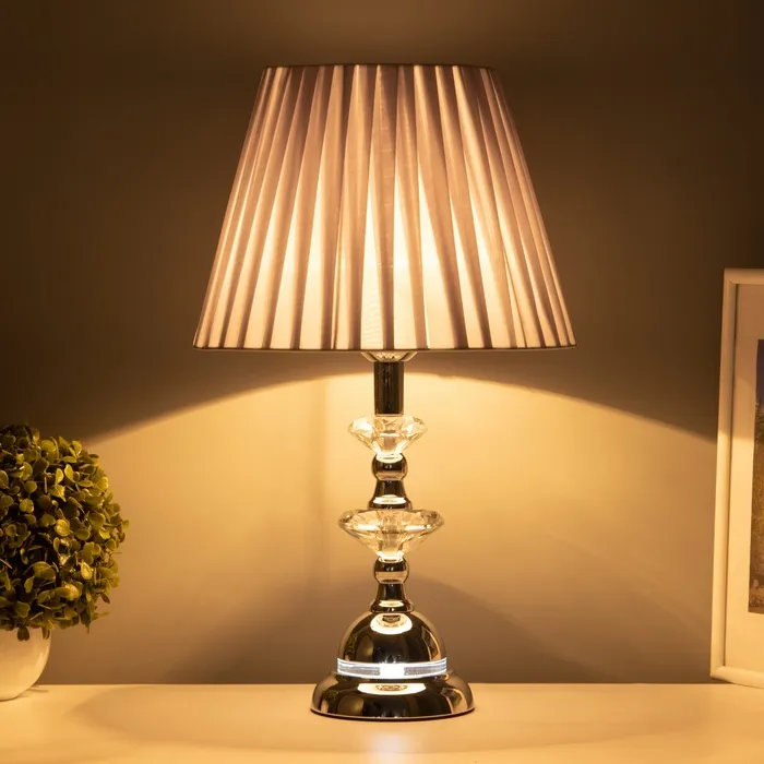 - Металлическое основание в хромированном цвете придаёт лампе современный и изысканный вид.