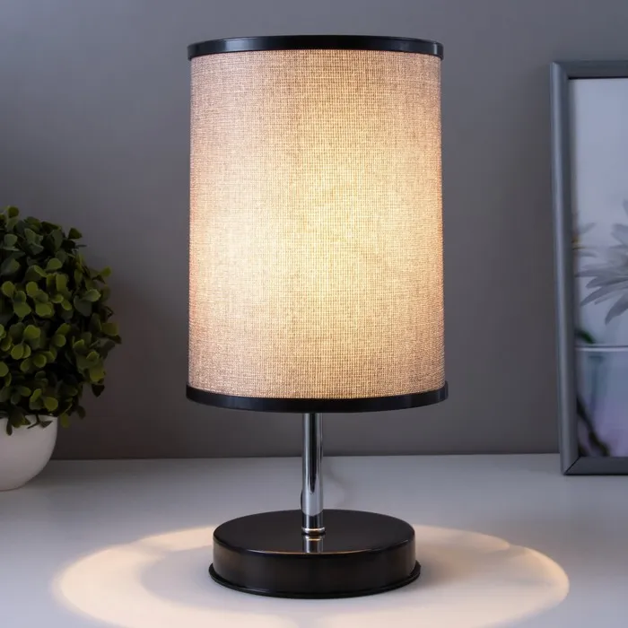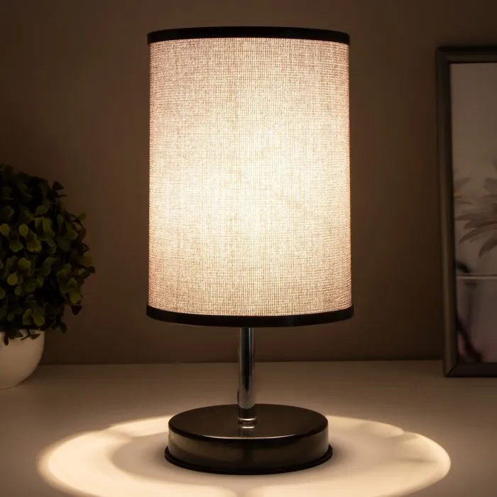 - Текстильный абажур в форме цилиндра обеспечивает мягкое и рассеянное освещение, комфортное для глаз.