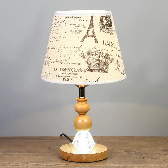 Настольная лампа «Аврора» с текстильным абажуром украсит интерьер в классическом стиле. Основание выполнено из натурального дерева.