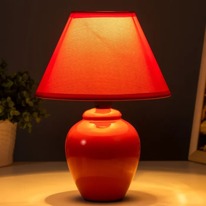 Яркая настольная лампа добавит живости и стиля в ваш интерьер. Ее красное керамическое основание и оригинальный абажур создают эффектный акцент, который привлекает внимание и наполняет пространство теплом.