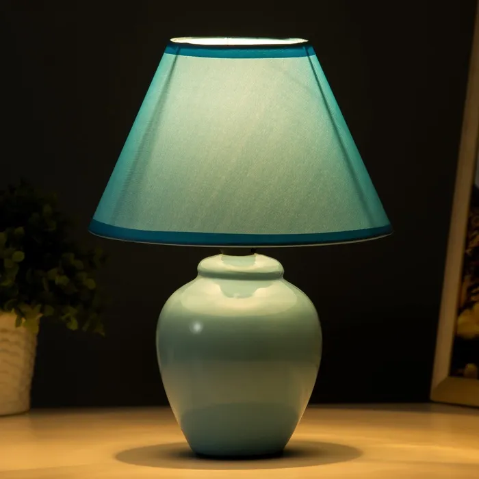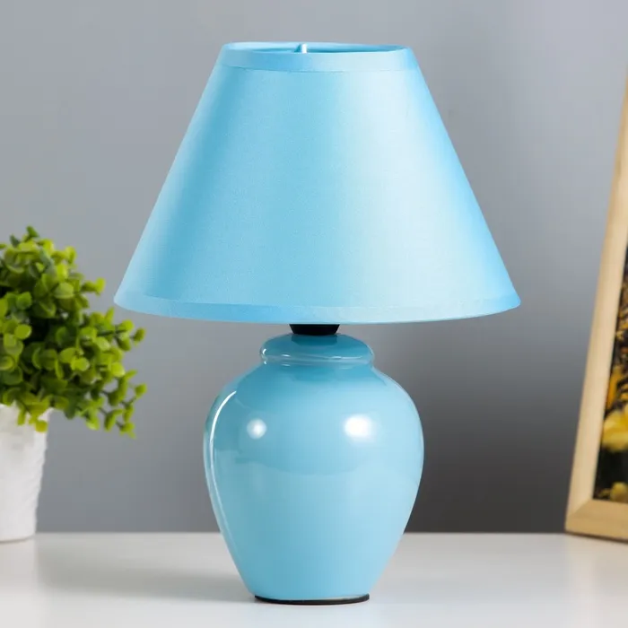 Настольная лампа с керамическим основанием в синем цвете станет стильным акцентом в вашем интерьере. Она идеально подходит для создания уютной атмосферы в любом помещении, будь то кабинет, спальня или гостиная. Элегантный абажур в форме трапеции мягко рассеивает свет, создавая приятное освещение для чтения или работы.