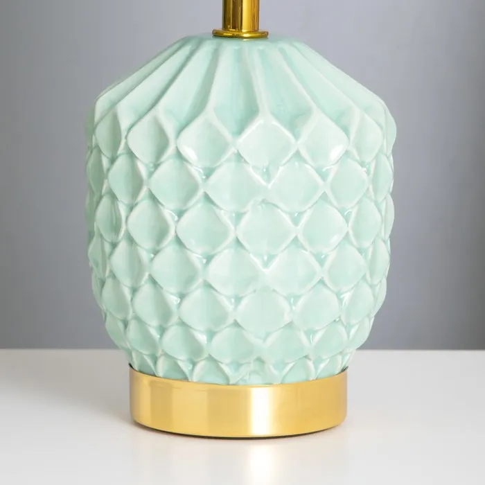 Настольная лампа в бирюзовом оттенке станет отличным элементом для вашего интерьера. С высотой 30 см и размерами 15×15 см, она идеально подходит для создания уютной и комфортной атмосферы в любом помещении. Керамическое основание и текстильный абажур в светлых тонах обеспечивают мягкое и приятное освещение, подходящее для чтения или отдыха.